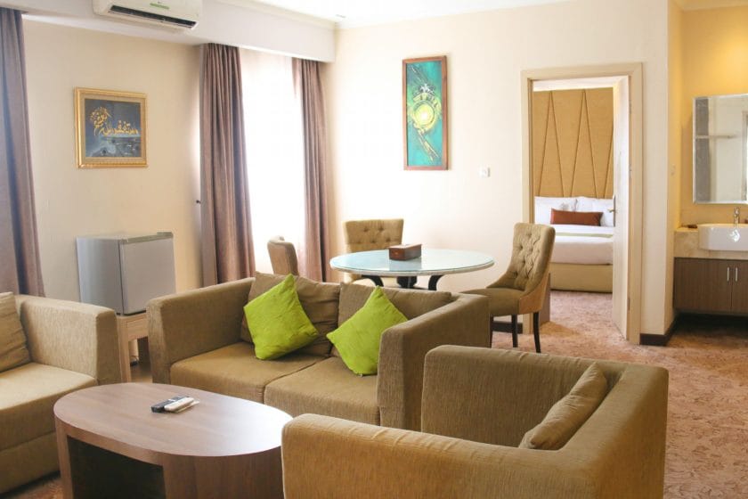 Fasilitas: Bathtub, Breakfast, Coffee and Tea, Color TV with satellite and cable channels, free wifi, Hair Dryer, Individually controlled air conditioning, Living Room, Peralatan Ibadah, Shower, Tissue, Toiletries, Towel